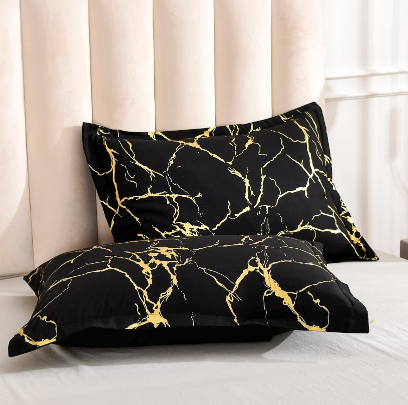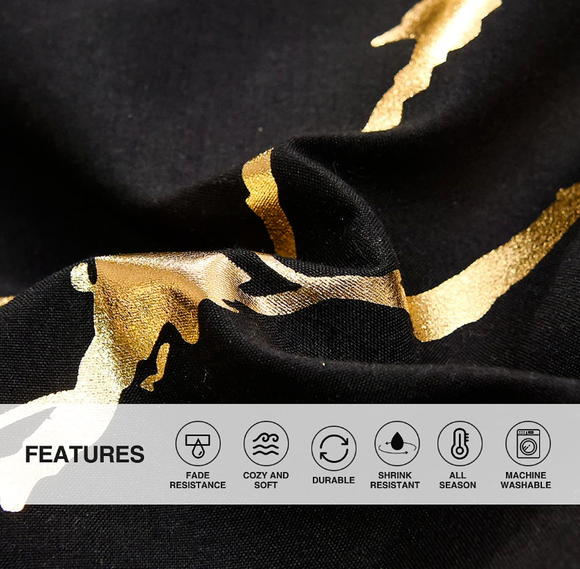 • Unique design: Modern comforter with golden metallic geometric marble print complemented with black reverse and matching shams & decorative pillow, highlighted the subtle blush base creating a beautiful contrast. A shimmering bed set will bright up your bedroom and make you happy!