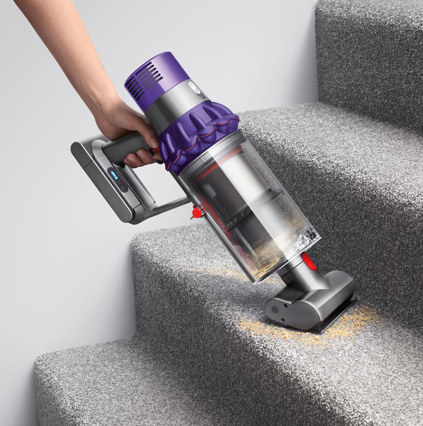 Powered by the Dyson digital motor V10, 14 cyclones, Fade-free power, Whole-machine filtration, Acoustically engineered, In-line configuration, Quickly transforms to a handheld, 'Point and shoot' hygienic bin emptying