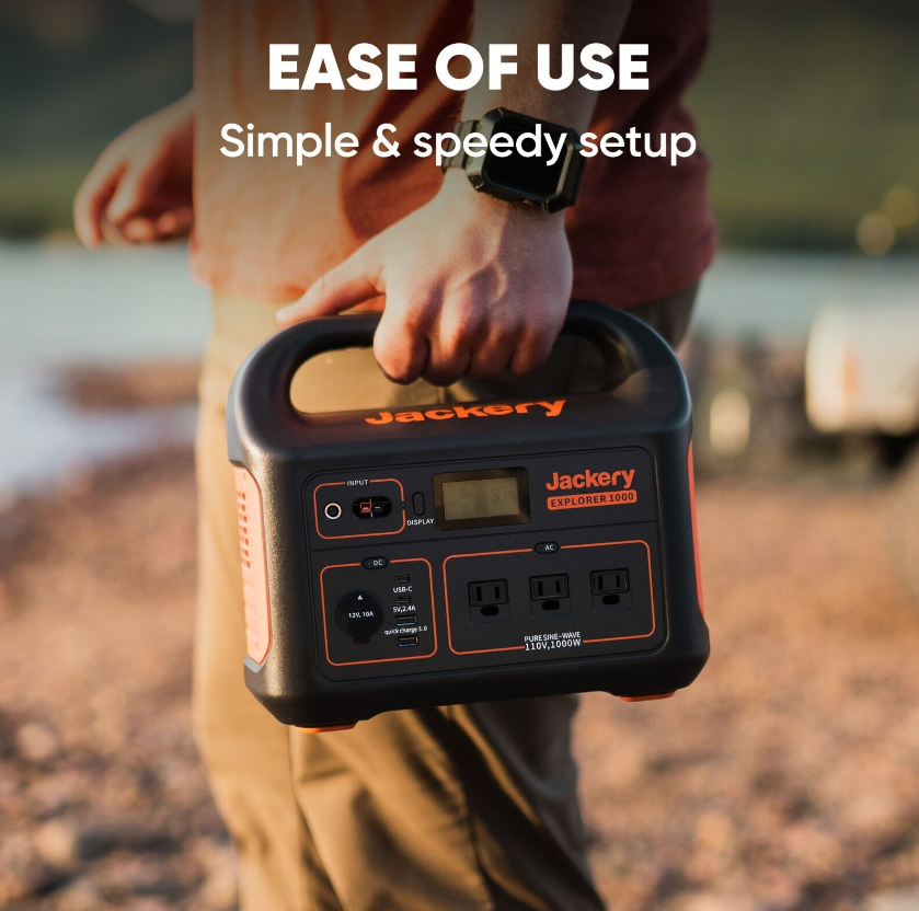 What You Get: 1* Jackery Explorer 1000 Portable Power Station (1002Wh Portable Power Station), 1*AC Adapter, 1* Car Charger Cable, 1*SolarSaga Parallel Adapter Cable, 1* User Manual.