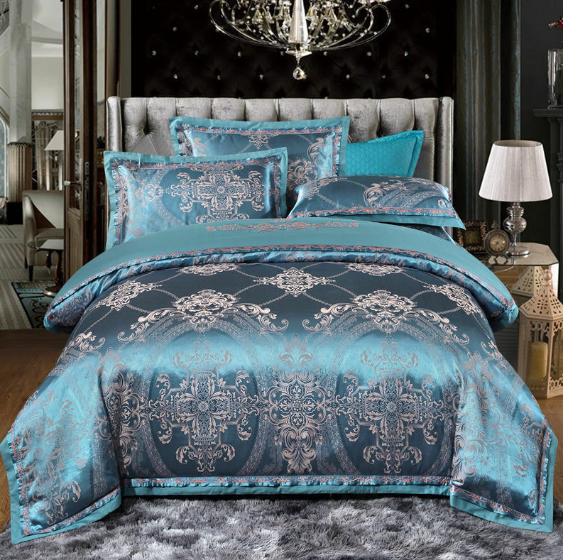 Duvet cover outer side is made of satin jacquard fabric, duvet cover inner  side and bed sheet is made of 100% cotton fabric,  use pure environmental reactive printing, bright colors, high color fastness, protect health. nature cotton fabric ,more comfortable and breathable. bring excellent sleep.