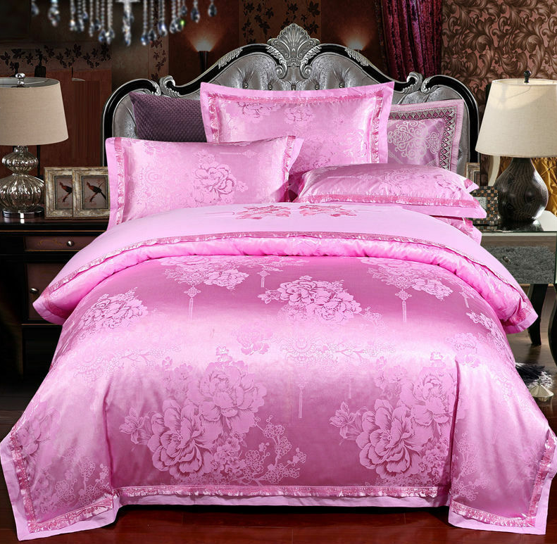 Luxury Silk Satin Bedding Sets Queen King Size Cotton Bed Bedlinen Linge