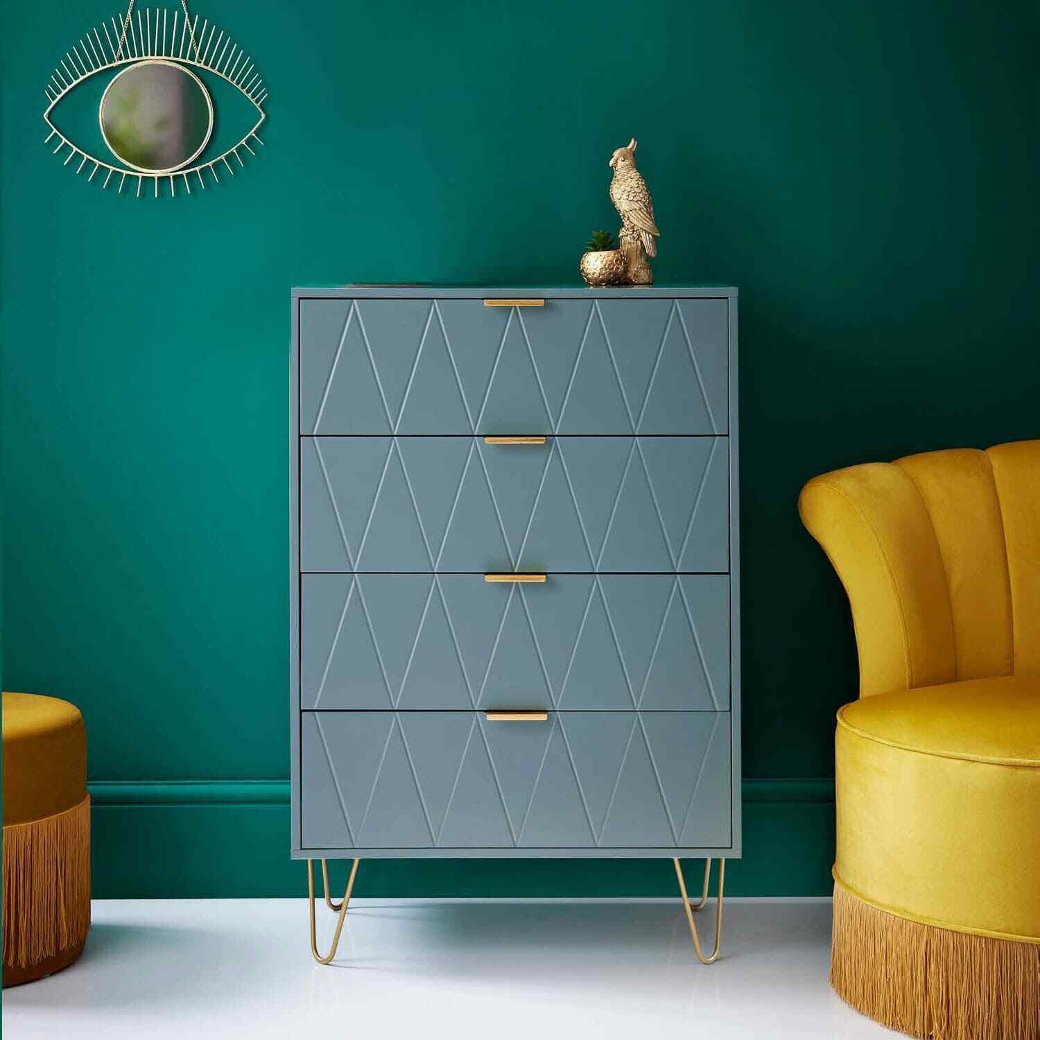 NEW 4 Drawer Chest & 2 Drawer Bedside Table With Gold Legs Bedroom Furniture