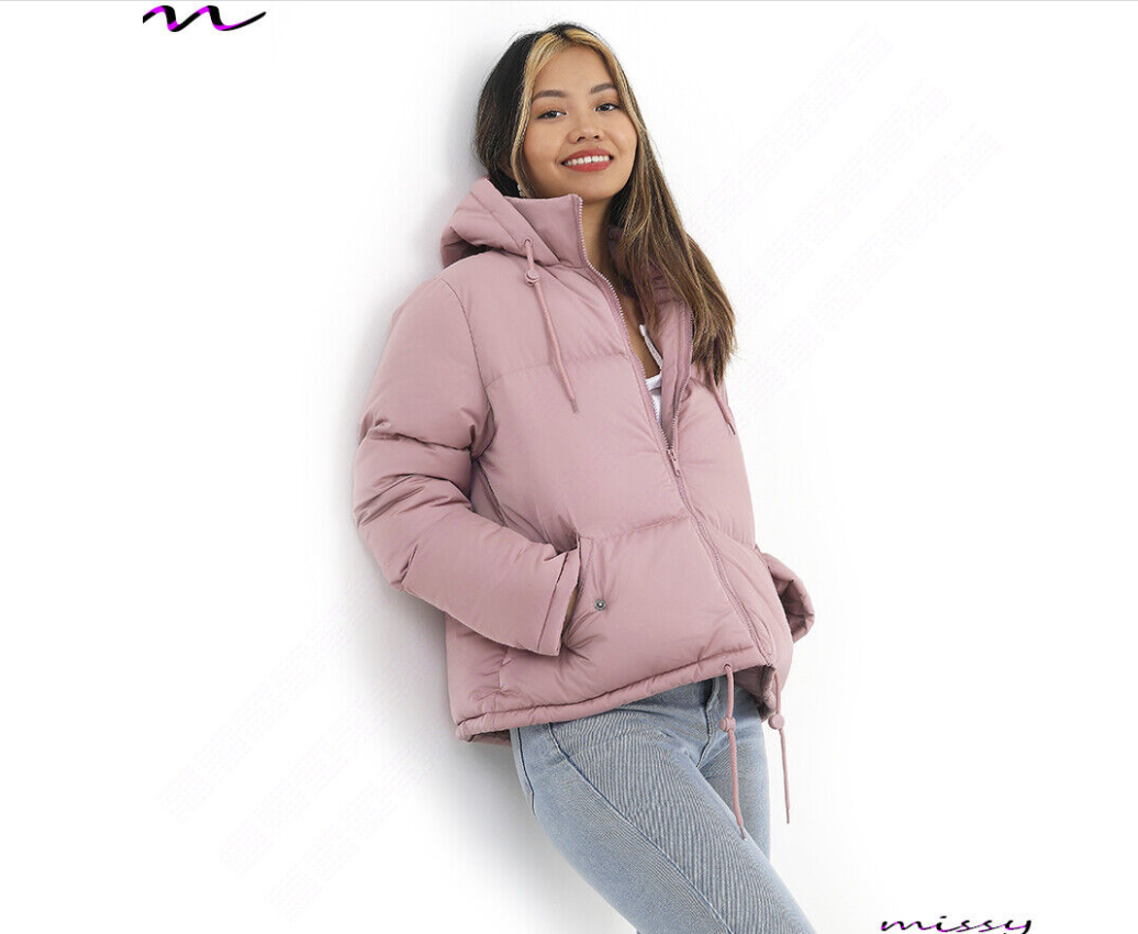 NEW WOMENS LADIES SHORT QUILTED WINTER COAT PUFFER HOODED JACKET PARKA SIZE