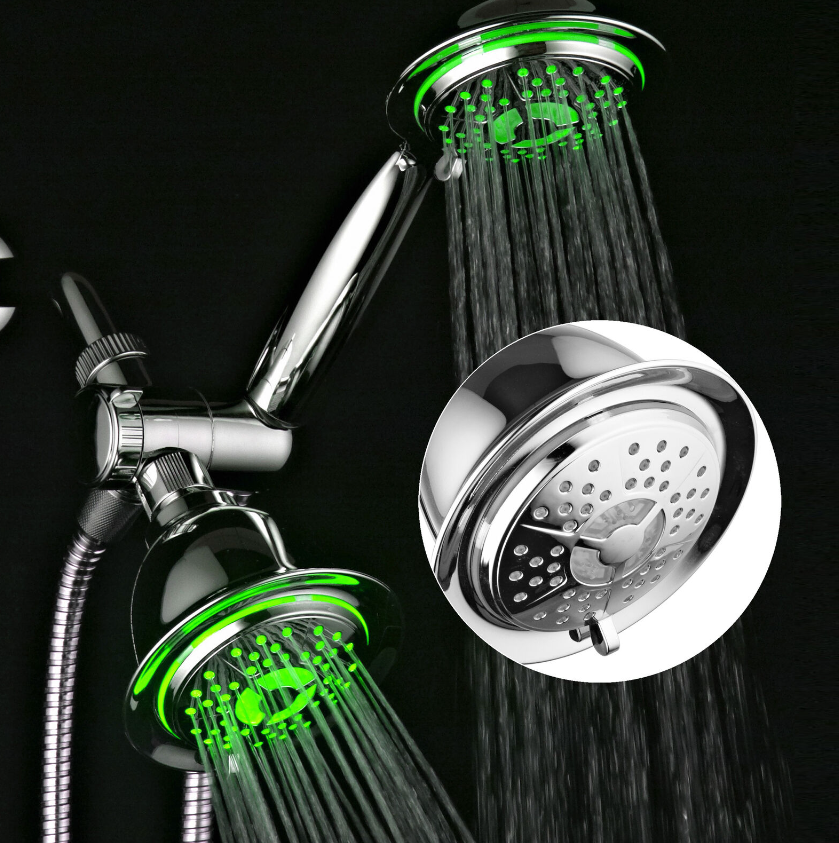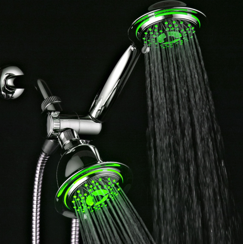 • Both shower heads feature Hydro Supercharged Turbine LED, Air Jet design that maximizes your water pressure output performance by injecting oxygen into water flow through 48 elastic rub-clean nozzles that help prevent clogging