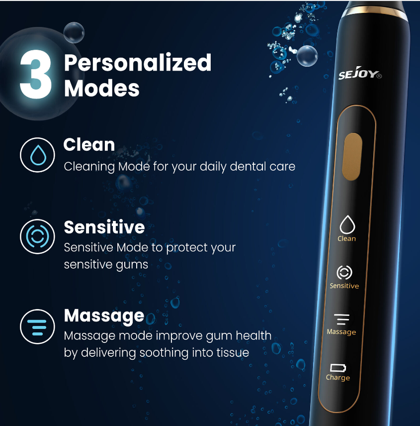 • Powerful Motors:With 30,000 sonic vibrations per minute,it can remove up to 15x more plaque than a manual toothbrush,reduces gum bleeding.Choose between the three modes for your ideal strength: clean, sensitive or massage.