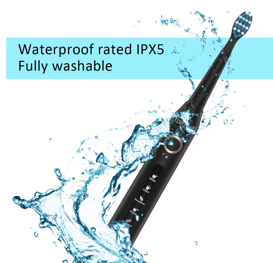 2 minutes smart timer with interval pause reminding each 30 seconds to encourage dentist-recommended brushing habit. Waterproof to be used at bath and shower.